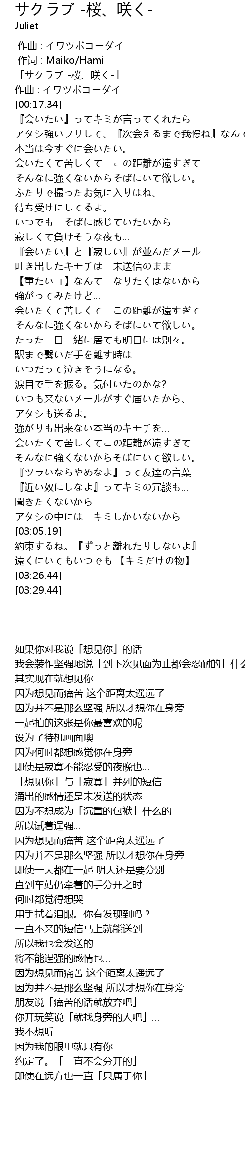 | [00:01.34] | 「サクラブ -桜、咲く-」 |