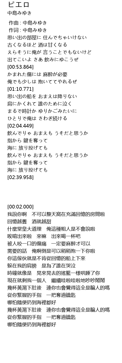作词 : 中島みゆき |