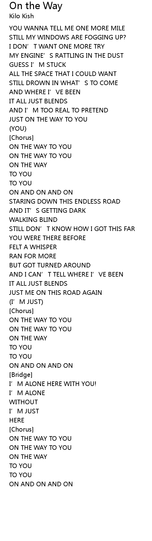 | ON THE WAY TO YOU | |