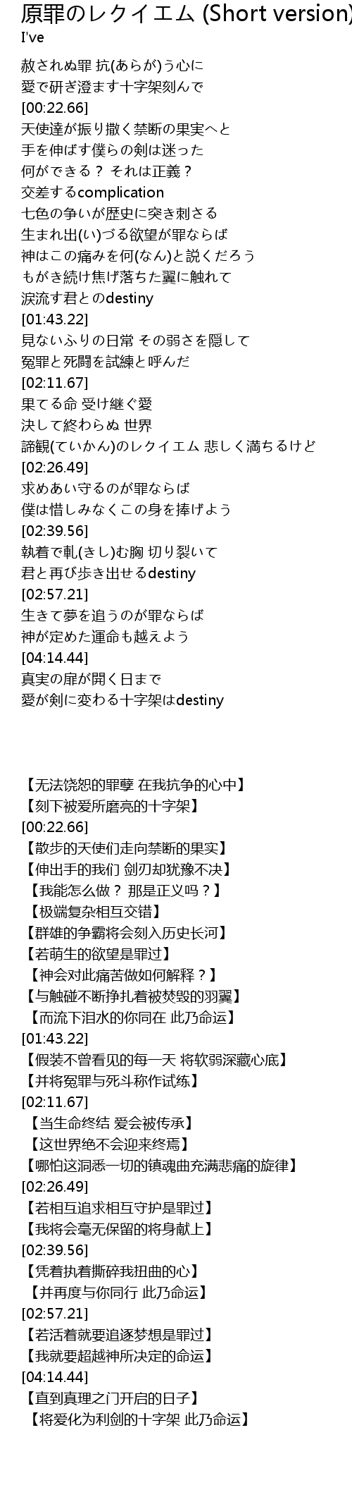 | [04:21.00] | 愛が剣に変わる十字架はdestiny |