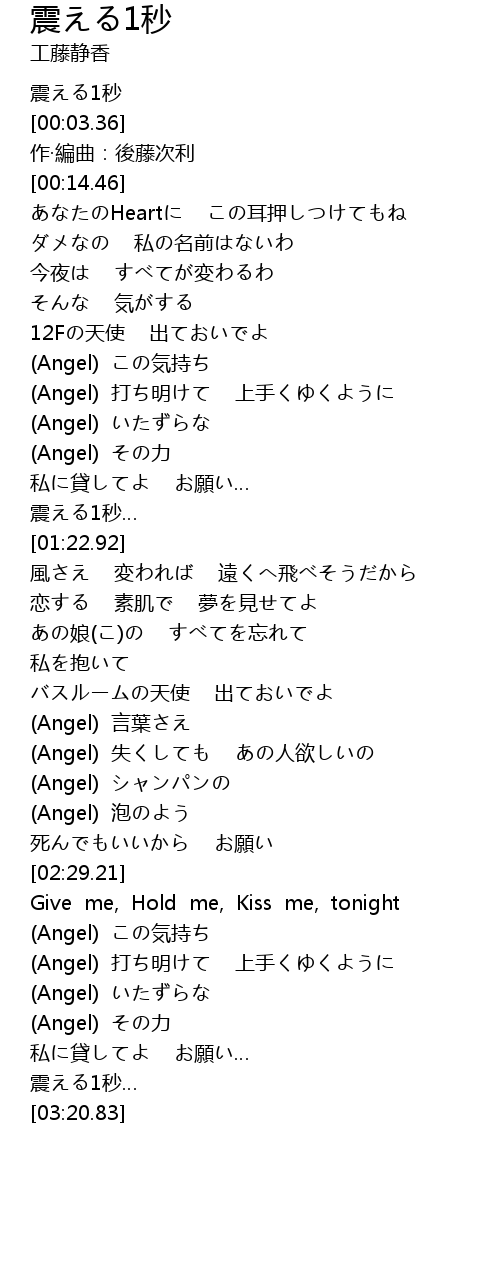 | [00:42.39] | 12Fの天使 出ておいでよ |