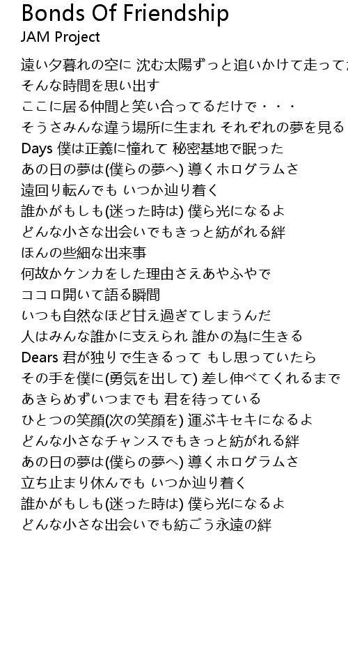 | Song | Bonds Of Friendship |