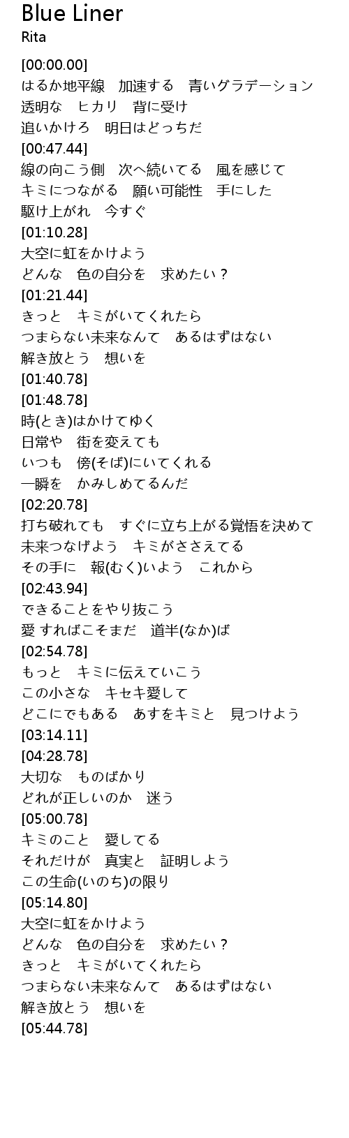 | [00:26.28] | はるか地平線 加速する 青いグラデーション |
