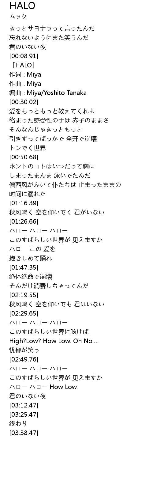 | [00:22.02] | 编曲∶Miya/Yoshito Tanaka |