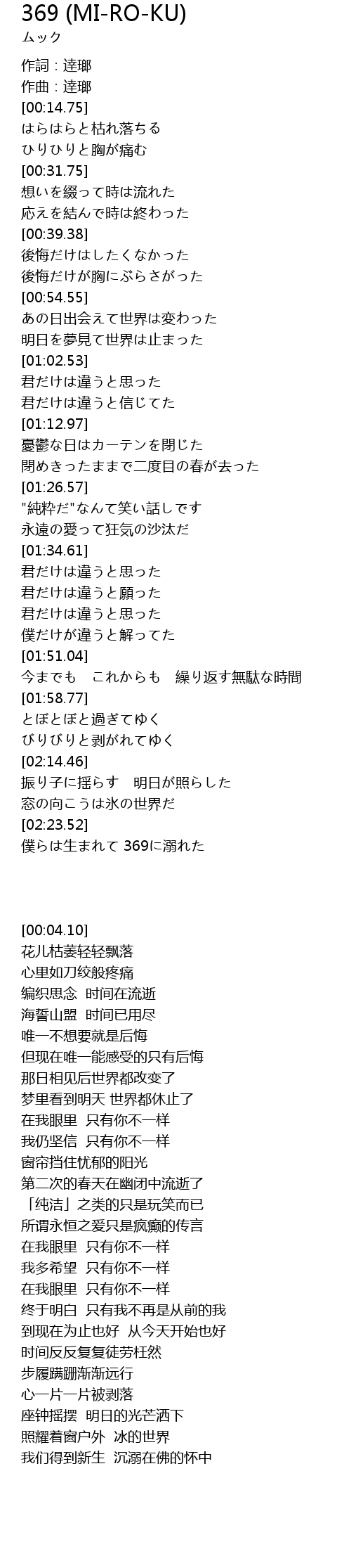 | [02:57.16] | 僕らは生まれて 369に溺れた |