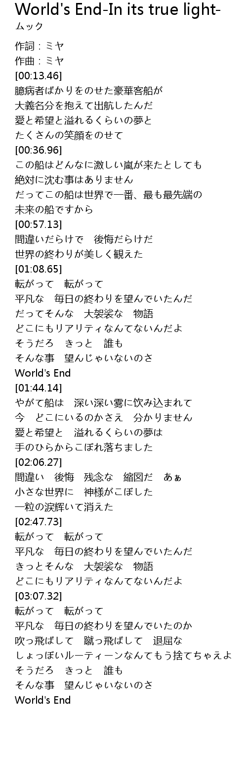 | [01:03.15] | 世界の終わりが美しく観えた |