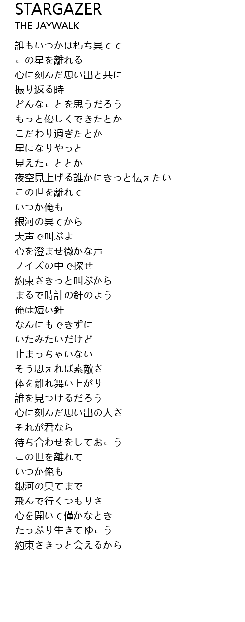 | [01:03.660] | 夜空見上げる誰かにきっと伝えたい |
