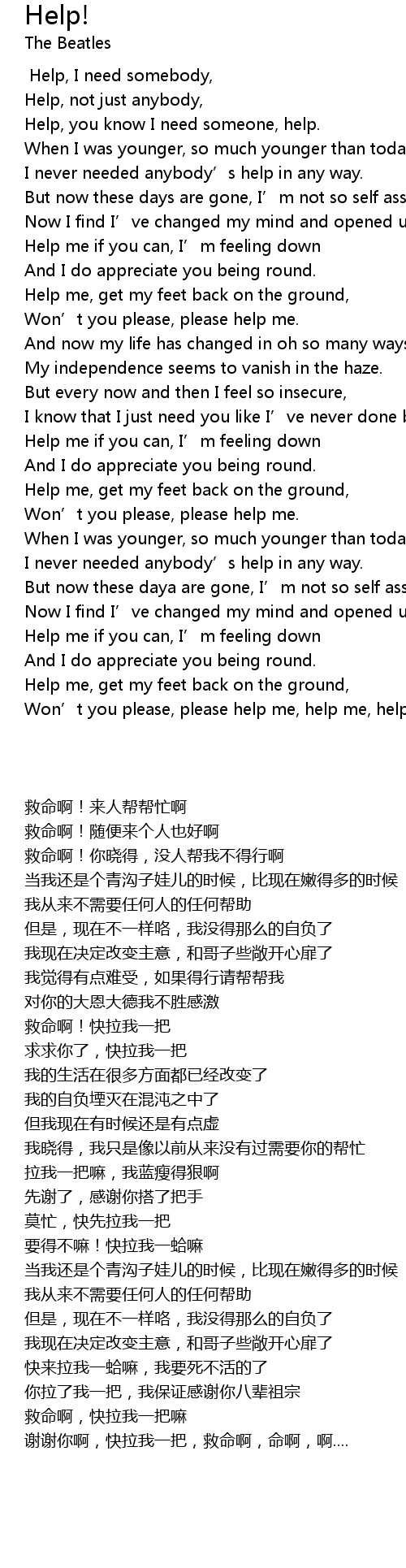| [00:05.58] | Help, you know I need someone, help. |