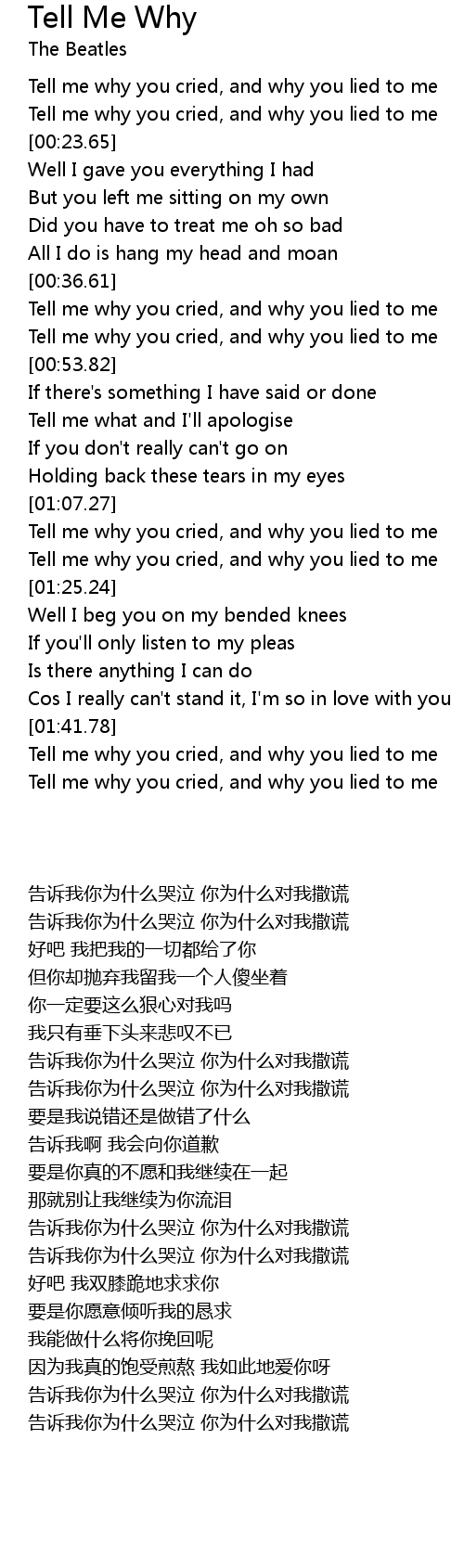 Tell me why you cried, and why you lied to me |