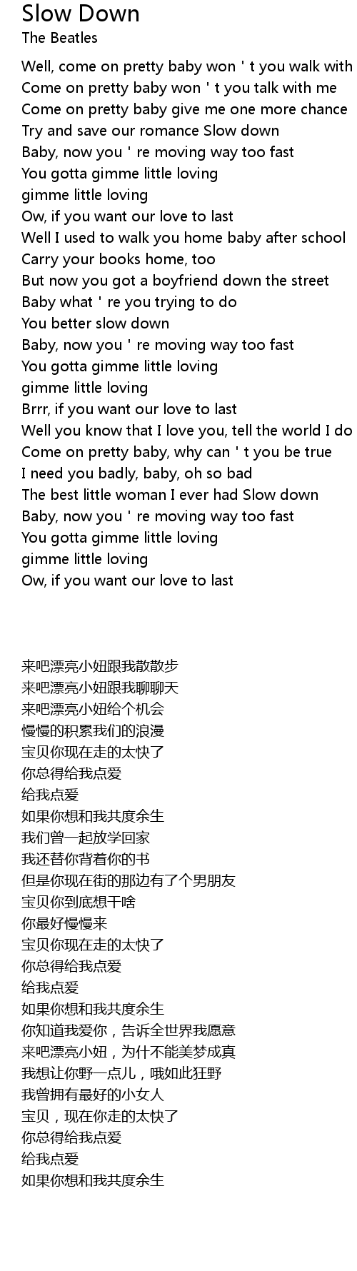 | [01:19.60] | You better slow down |