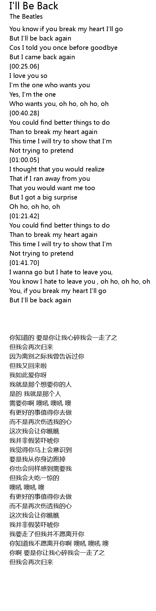 I'll Be Back Lyrics