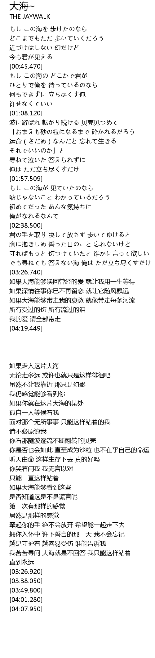 | [03:12.710] | でも寻ねても 答えない海 俺は ただ立ち尽くすだけ |