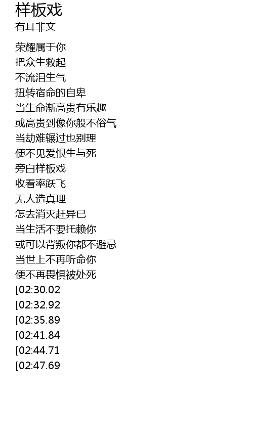 | [03:24.62][02:30.02] | 真心跟演戏 |
