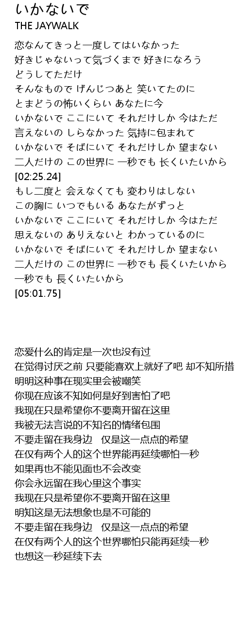 | [04:05.93] | いかないで そばにいて それだけしか 望まない |