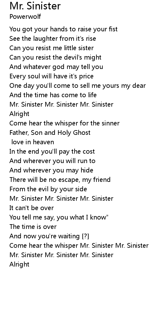 Come hear the whisper Mr. Sinister Mr. Sinister |