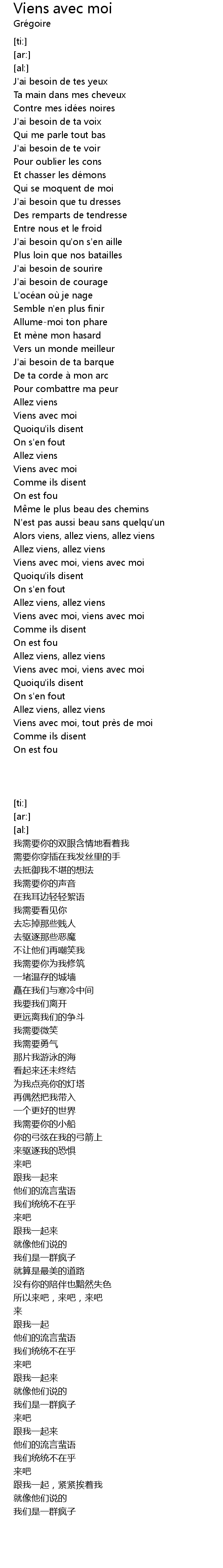 | [01:58.74] | Viens avec moi, viens avec moi |