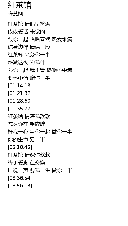 | [01:41.21] | 红茶馆 情深我款款 |