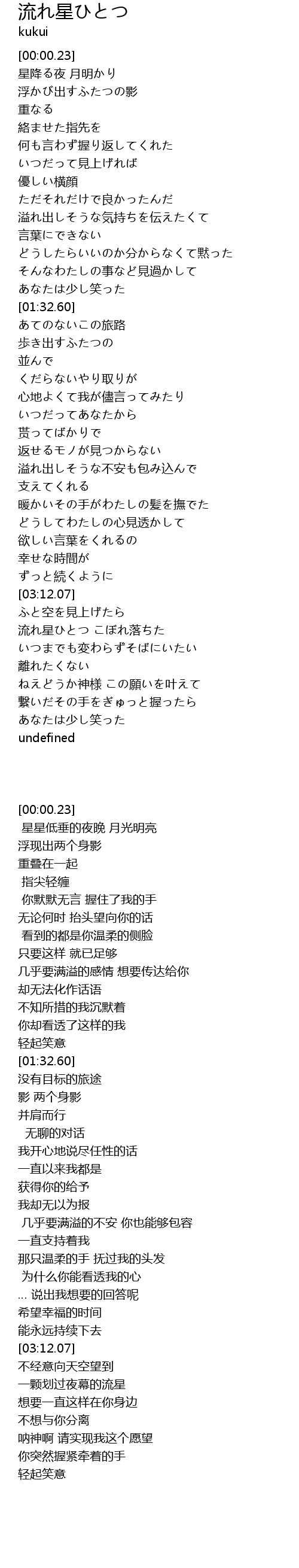 流れ星ひとつ こぼれ落ちた |