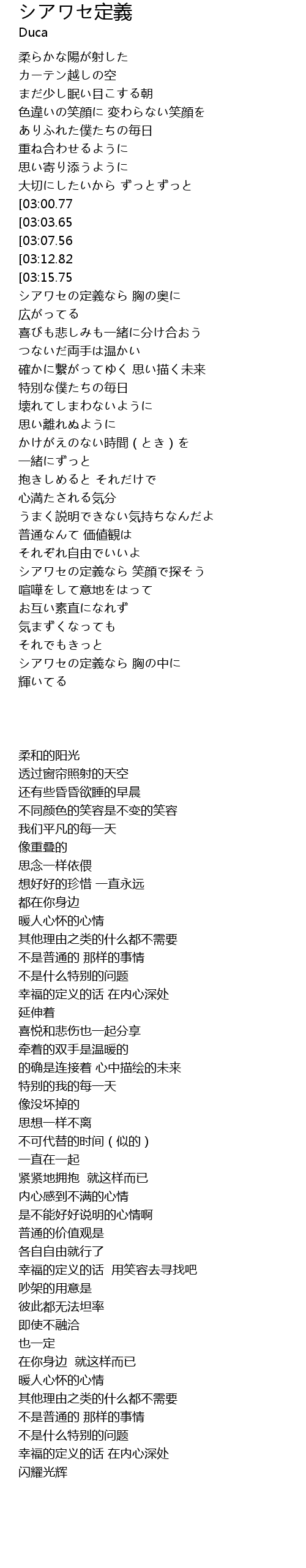 | [03:19.72] | シアワセの定義なら 胸の中に |
