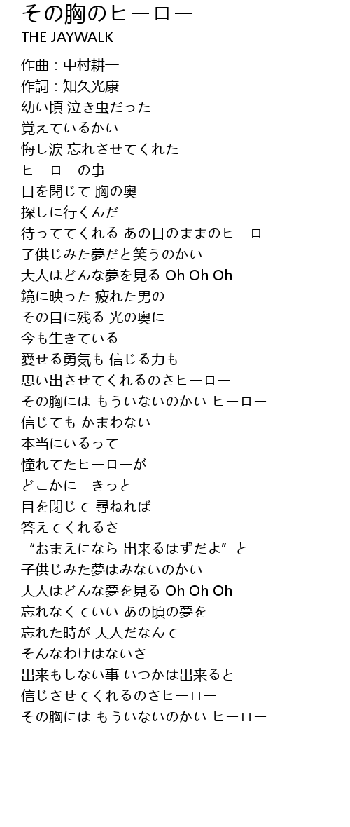 | [03:55.77] | その胸には もういないのかい ヒーロー |