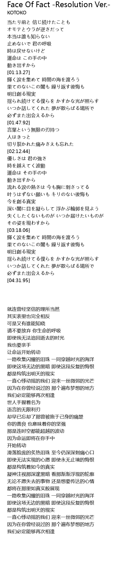 | [04:00.36] | 明日創る現実 |