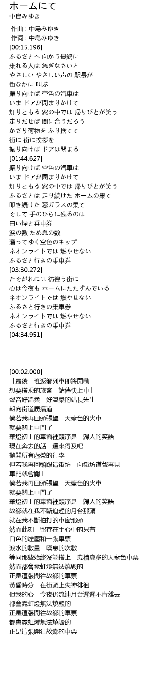 | [03:53.444] | 心は今夜も ホームにたたずんでいる |