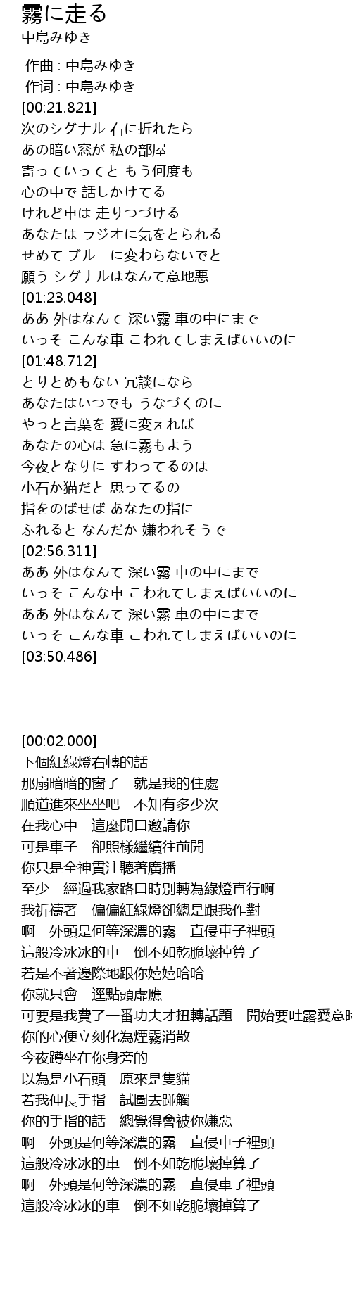 作词 : 中島みゆき |