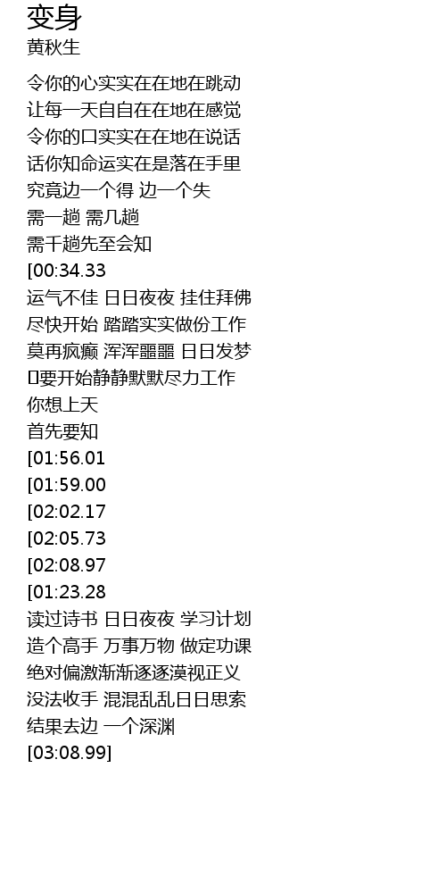 | [02:22.31][01:56.01][00:58.07] | 变换无定 世事难料 |