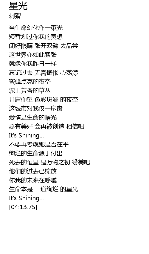 | [03:05.80] | 生命本是 一道绚烂 的星光 |
