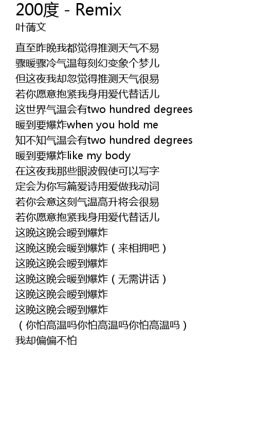 | [01:03.701] | zhī bù zhī qì wēn huì yǒu two hundred degrees |