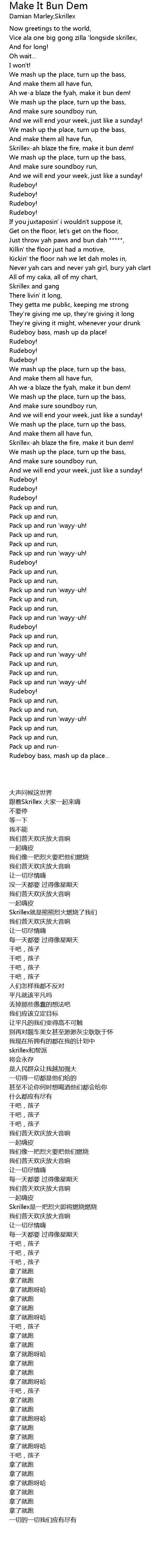 | [00:31.70] | Skrillex-ah blaze the fire, make it bun dem! |