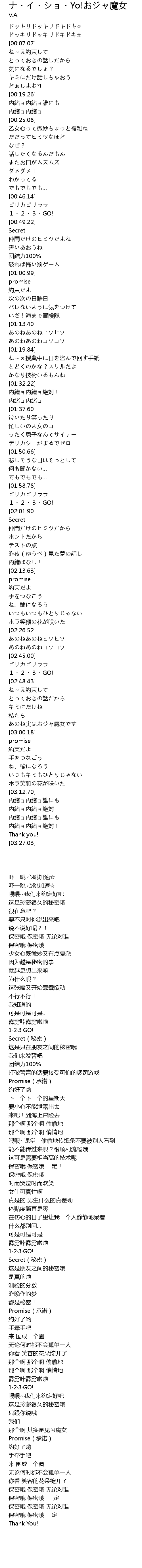 | [03:22.69] | 内緒ョ内緒ョ絶対! |