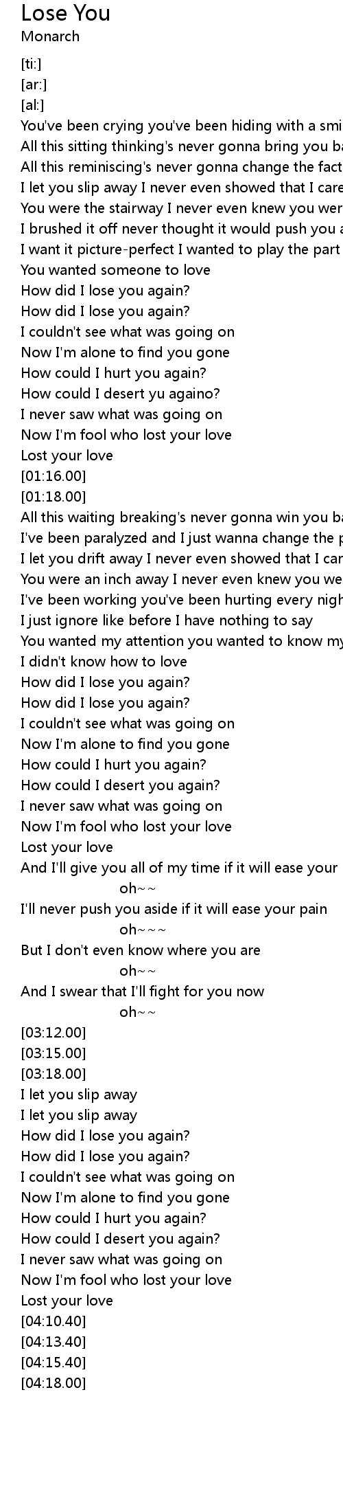 | [01:35.37] | You were an inch away I never even knew you were there |