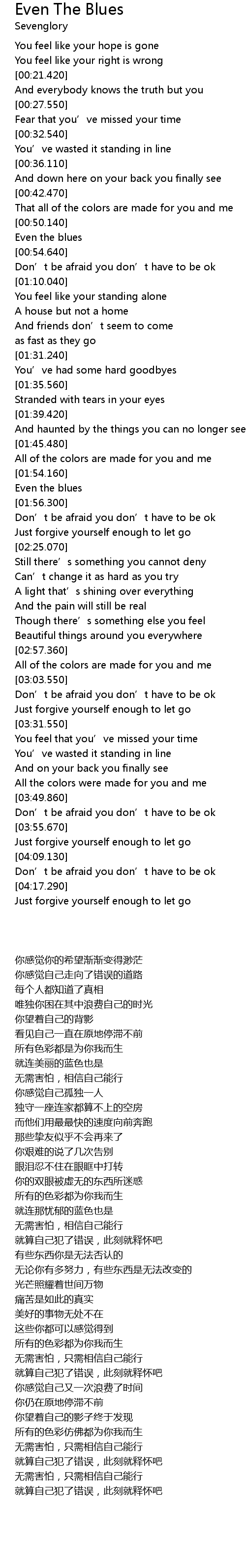 | [00:56.090] | Don' t be afraid you don' t have to be ok |
