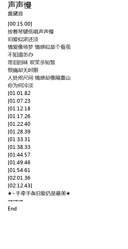 | [03:11.33][01:44.57] | 按着琴键低唱声声慢 |
