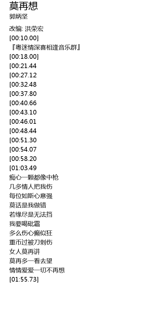 | [02:37.81][00:51.30] | 最好莫再想 |