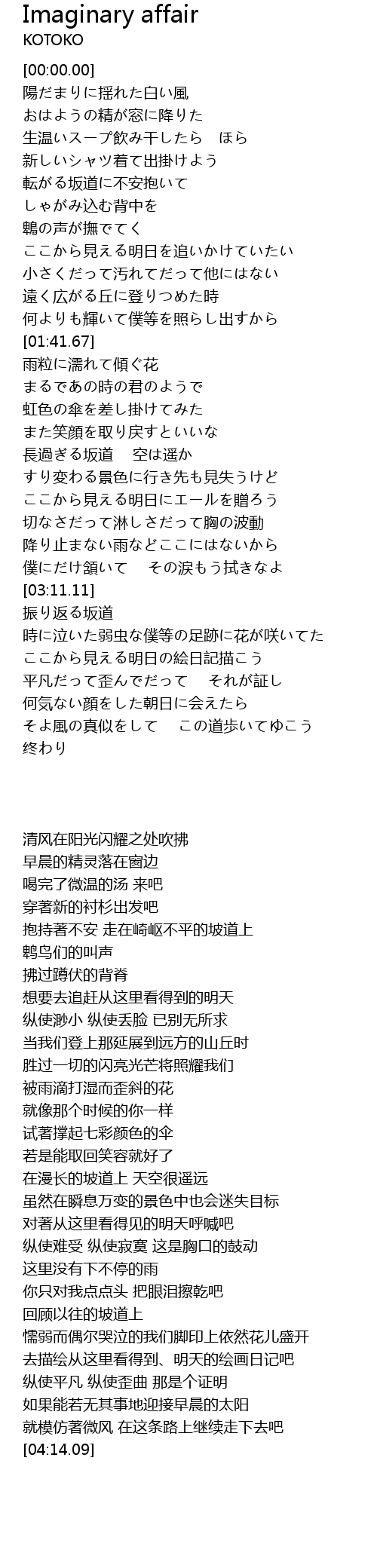 | [04:02.69] | そよ風の真似をして この道歩いてゆこう |