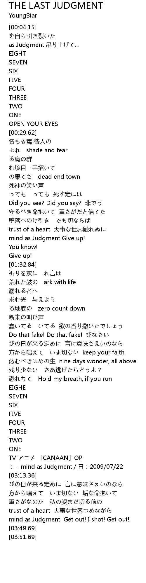 | [03:11.90] | : - mind as Judgment/日:2009/07/22 |