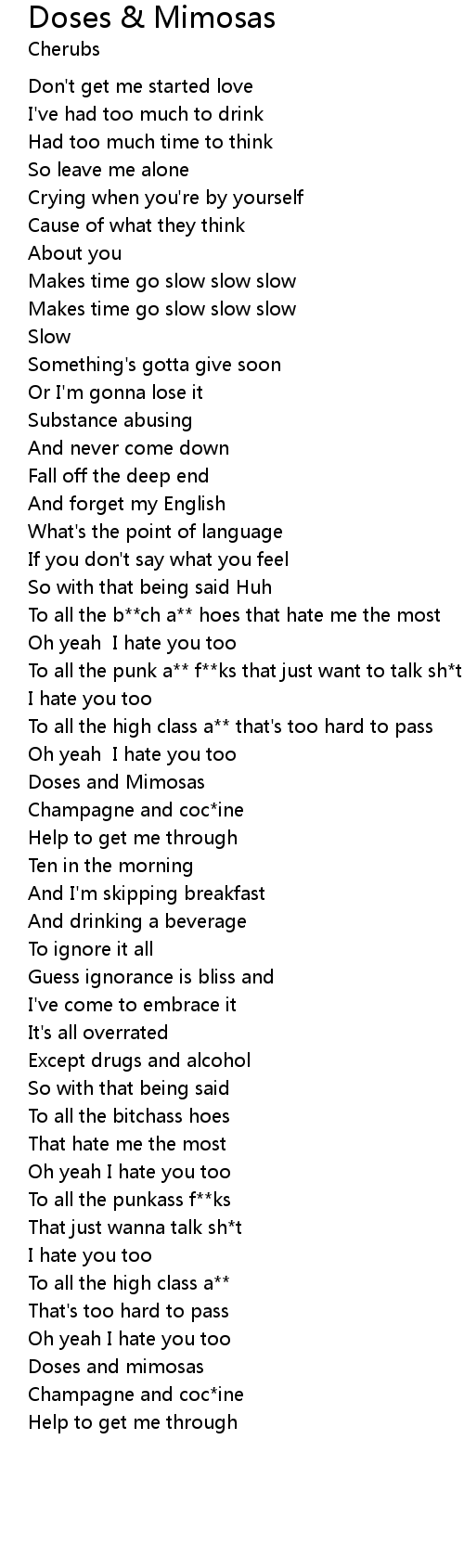 | [03:47.886] | Champagne and coc*ine |