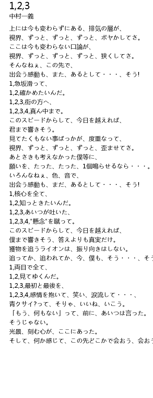 1,2,3,4,感情を抱いて、笑い、涙流して・・・、