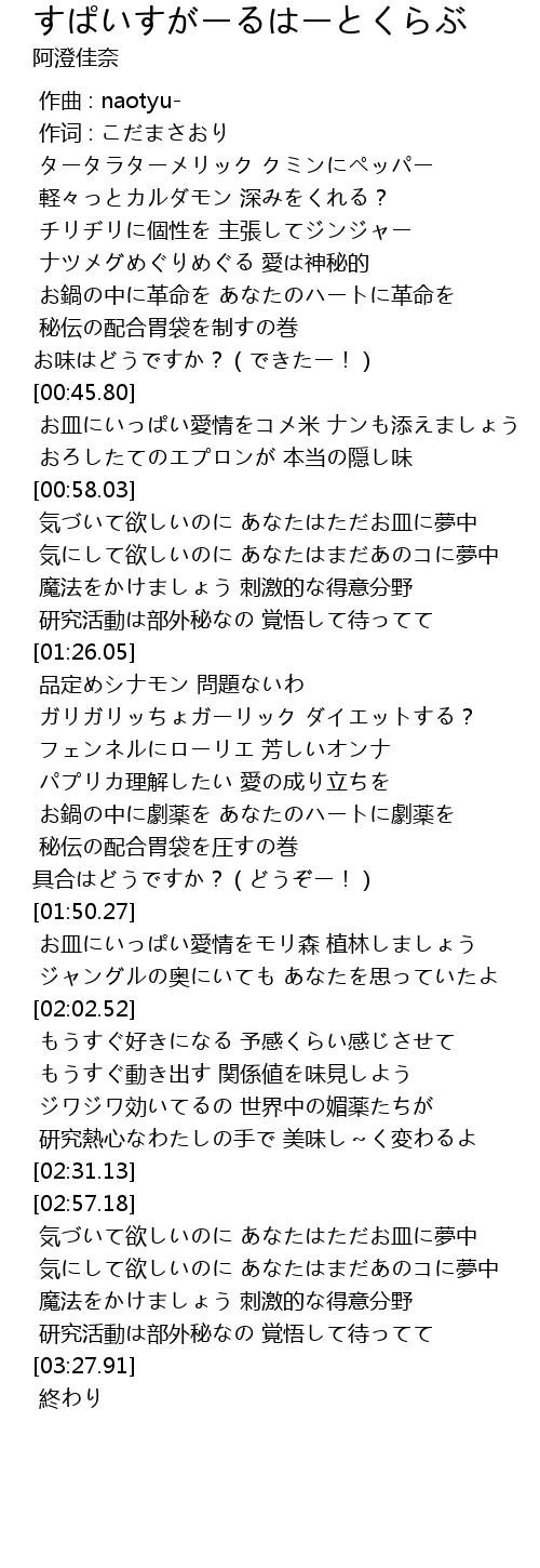 | [02:59.18] | 気づいて欲しいのに あなたはただお皿に夢中 |