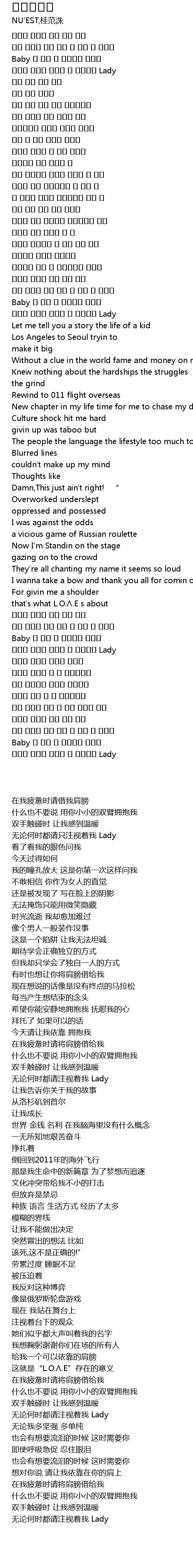 | [00:25.06] | 오늘도 내일도 똑바로 날 바라봐줘 Lady |