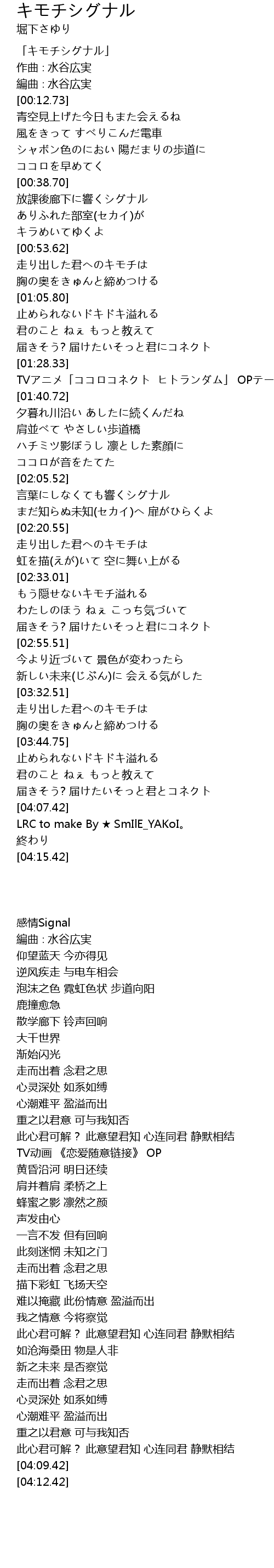 | [00:00.73] | 「キモチシグナル」 |