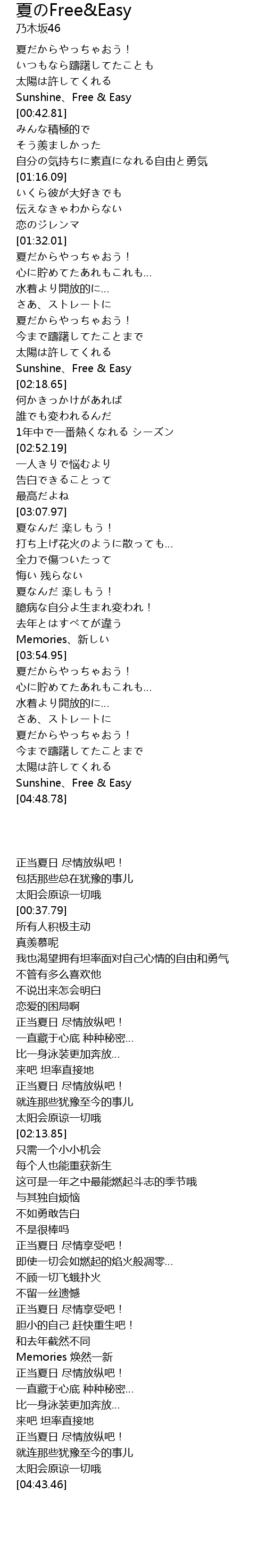 | [04:43.46] | Sunshine、Free & Easy |