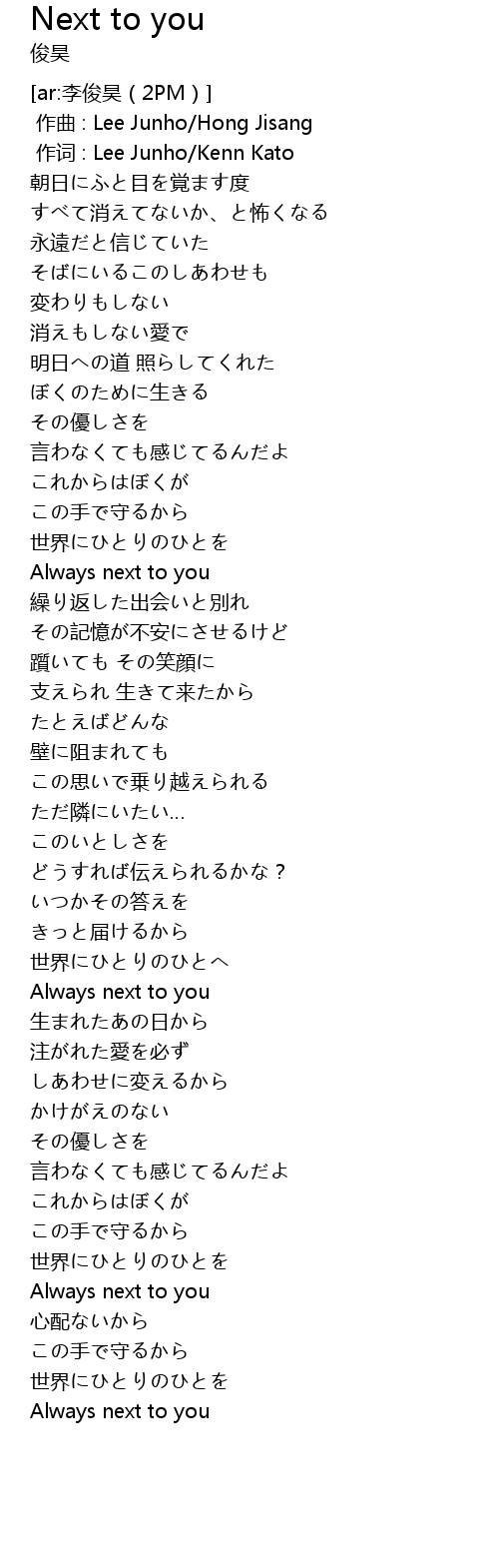 | [00:01.00] | 作词 : Lee Junho/Kenn Kato |