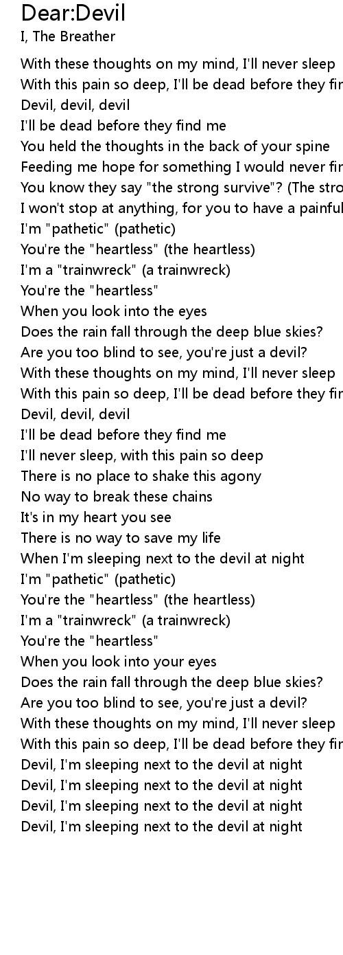 Devil, I'm sleeping next to the devil at night |