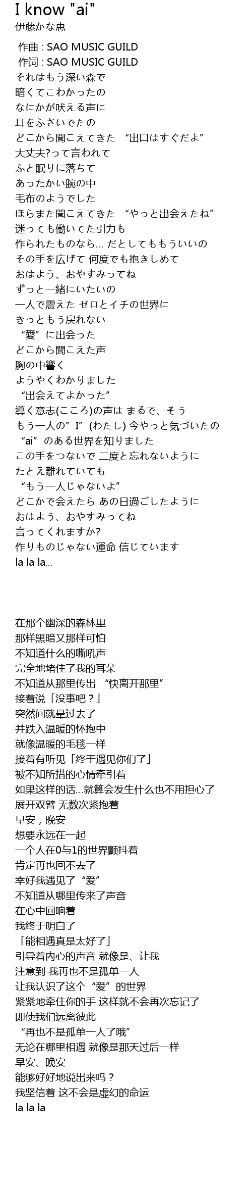 作词 : SAO MUSIC GUILD |