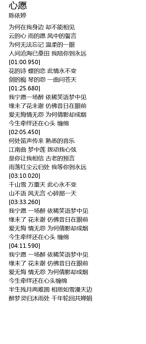 | [00:31.380] | 云的心 雨的愿 风中的誓言 |