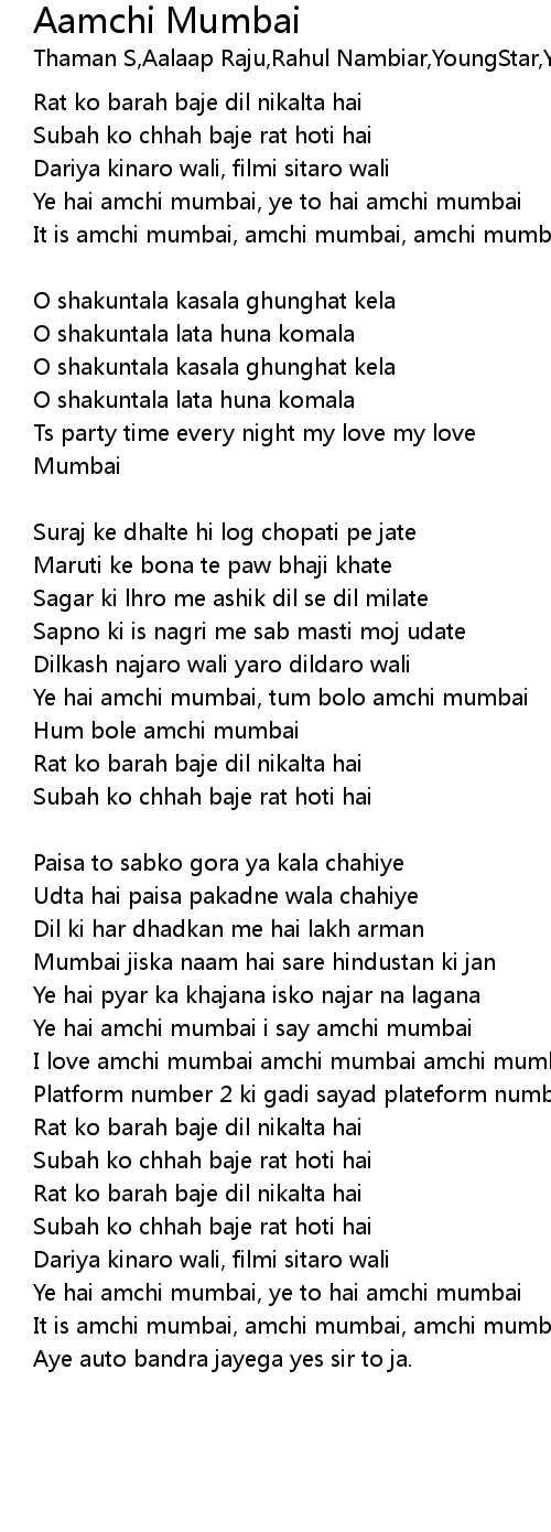 It is amchi mumbai, amchi mumbai, amchi mumbai |
