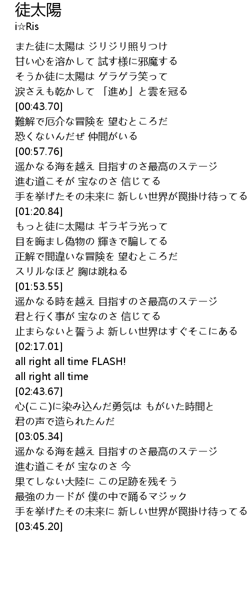| [00:19.75] | また徒に太陽は ジリジリ照りつけ |